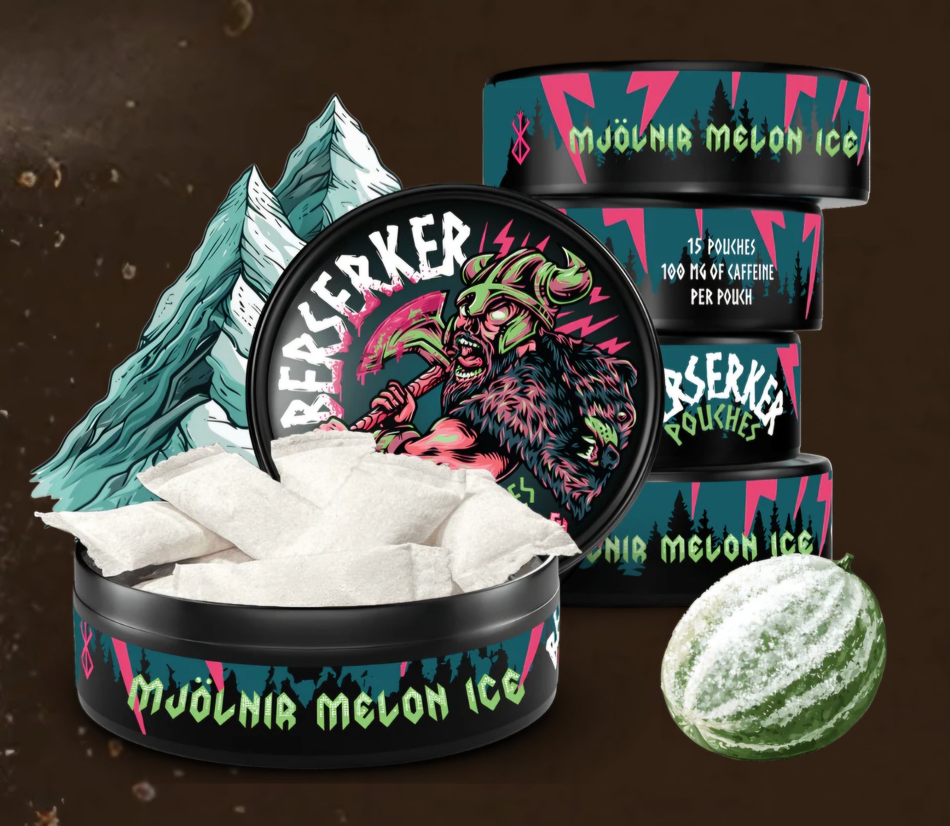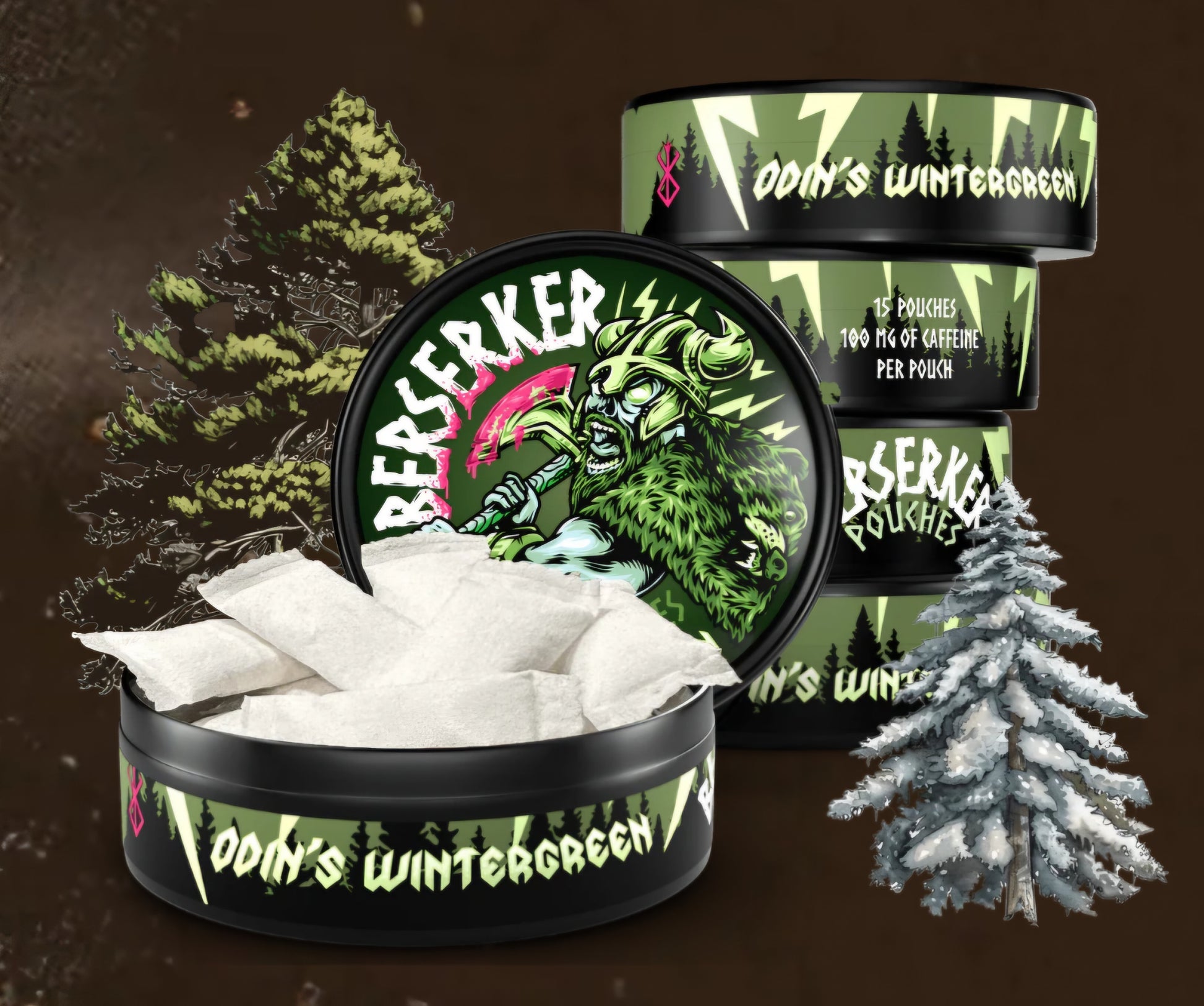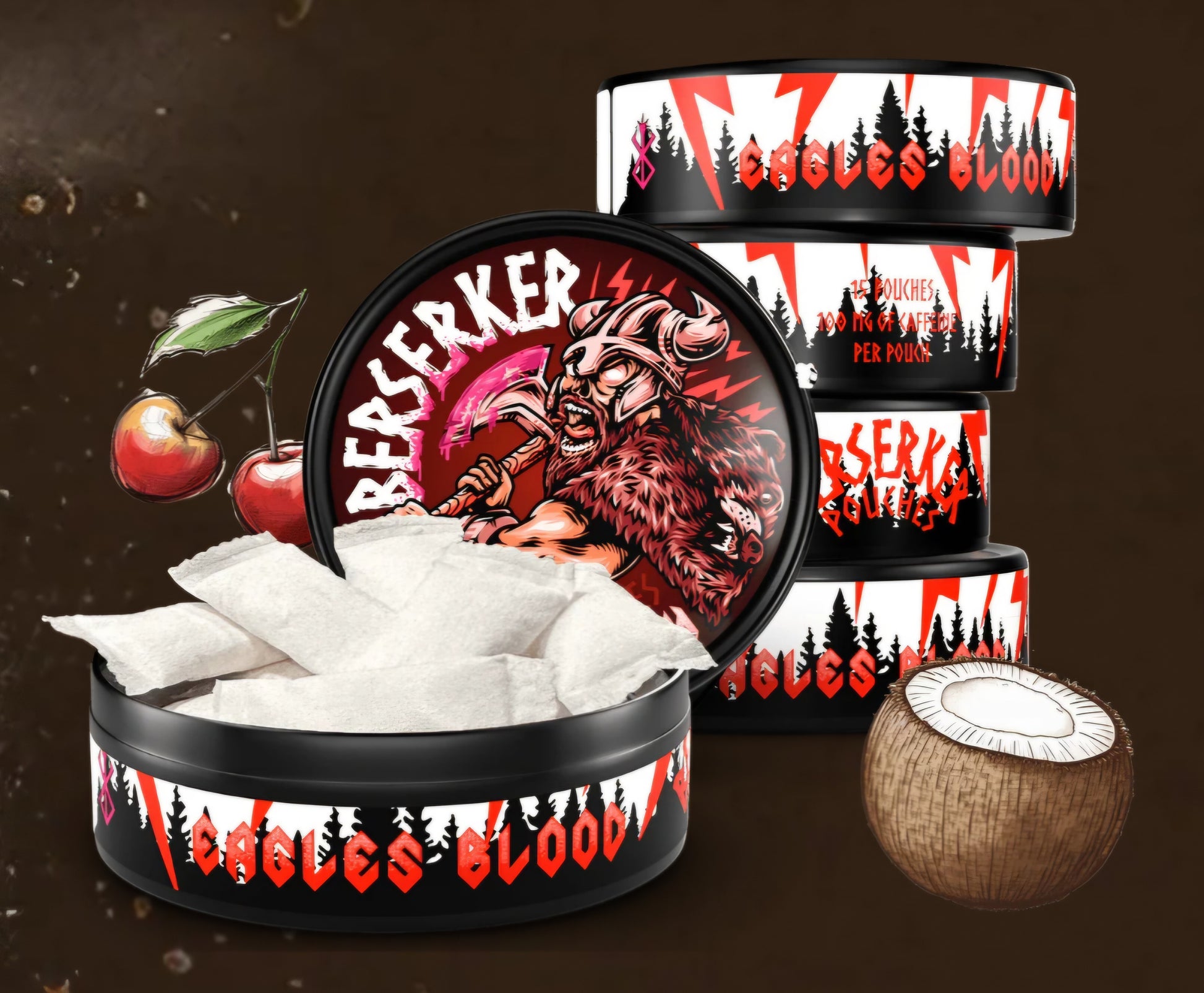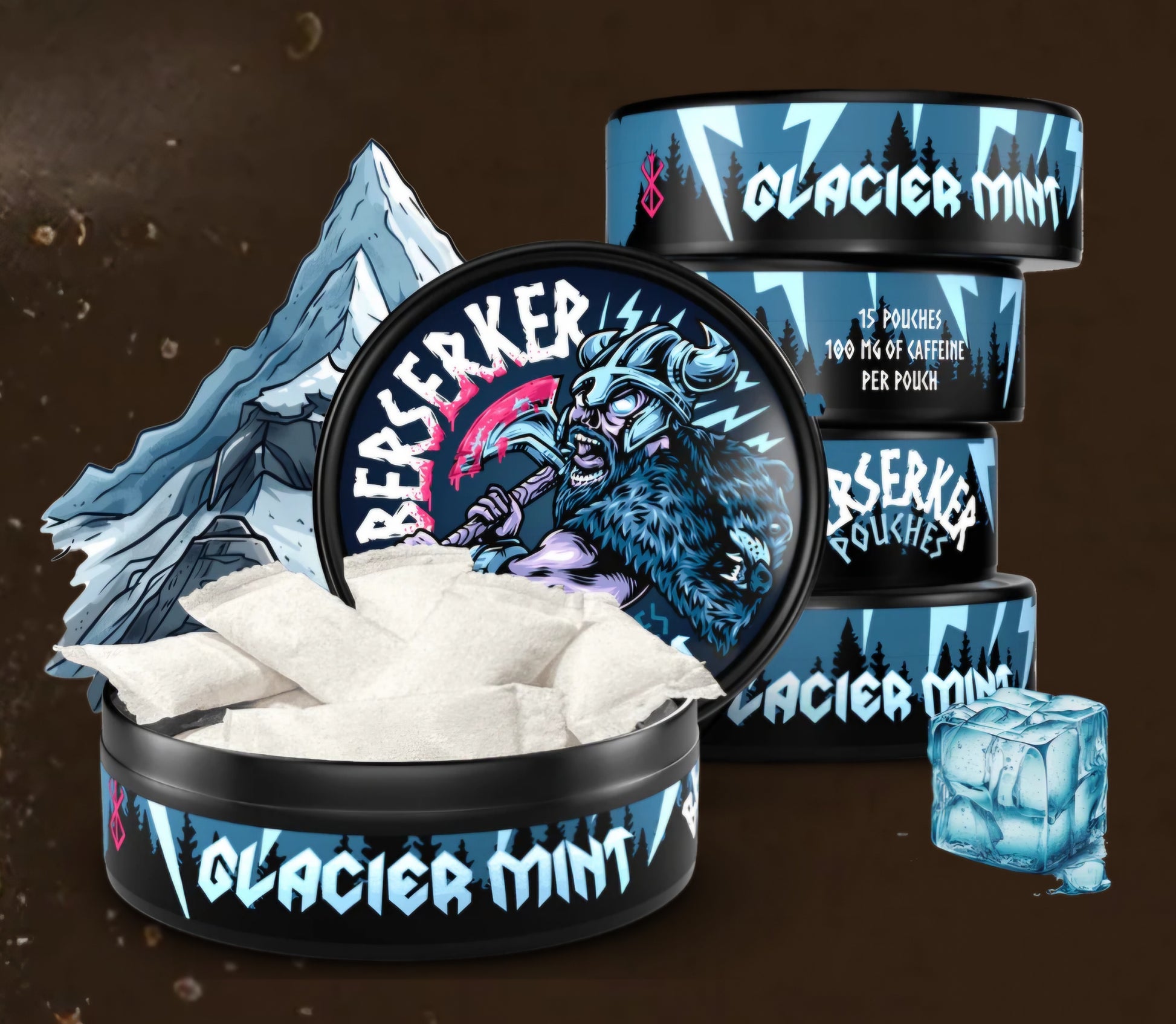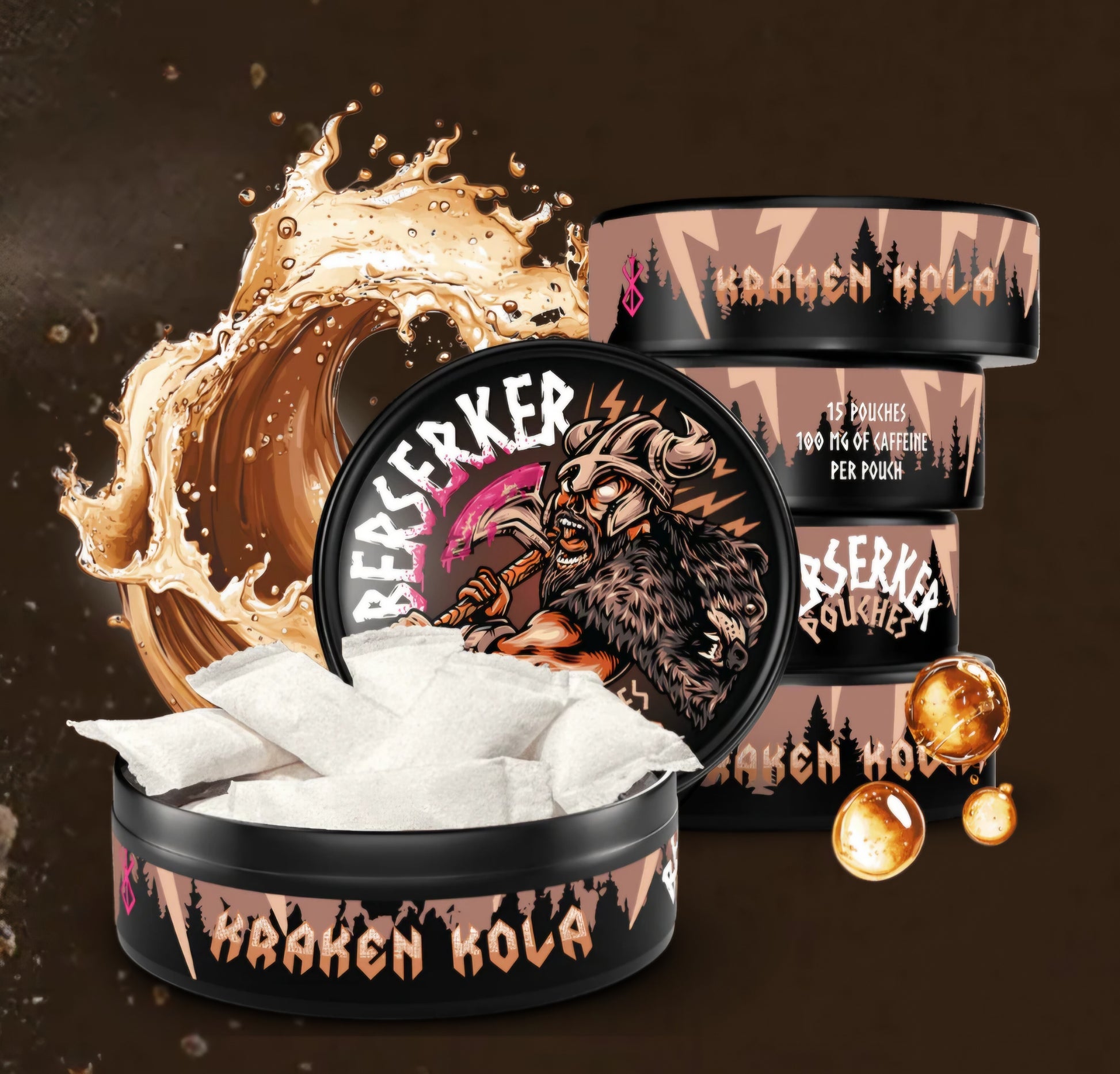 100mg of Caffeine per pouch. 15 pouches per container
